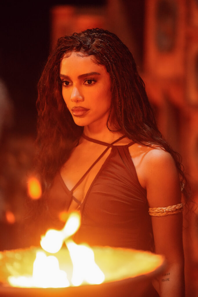 “‘Meia-Noite’ é muito sobre a noite e a rua como lugar de força”, introduz a girl from Rio. “E o vídeo vem com esse clima de ritual noturno, integrando elementos da ancestralidade brasileira com os paredões de som, característicos do funk. A gente meio que traça um paralelo entre a potência popular do candomblé e do funk, sabe? E reflete sobre a música como meio de transformação espiritual.”