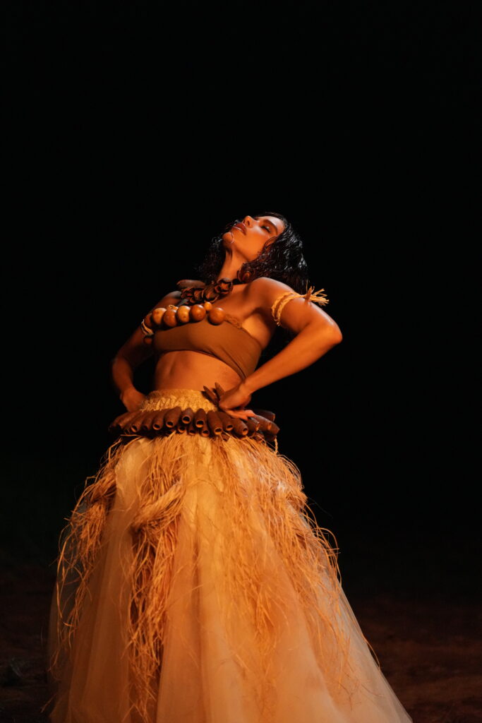 É nesse cenário que a ação de “Meia-Noite” acontece. Anitta surge ao lado de Mayara Lima, rainha de bateria da Paraíso do Tuiuti, apresentando uma coreografia assinada por Luciana Xavier. O maculelê, dança de origem afro-indígena-brasileira, associada à resistência quilombola e que simula uma luta tribal, é referência coreográfica, assim como a linguagem corporal dos arquétipos dos orixás e a energia da Pombagira.