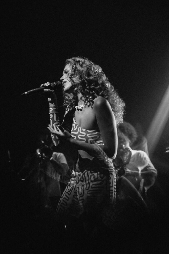 Bela cria no palco uma atmosfera de encontro e celebração, em diálogo direto com o público. A percussão ocupa papel central como linguagem e força narrativa do espetáculo, que se constrói a partir do corpo, do ritmo e da troca. O repertório reúne composições autorais e referências como Mayra Andrade e o Bumba Meu Boi de Ribamar, resultando em um show intenso, orgânico e ancorado na cultura popular brasileira.