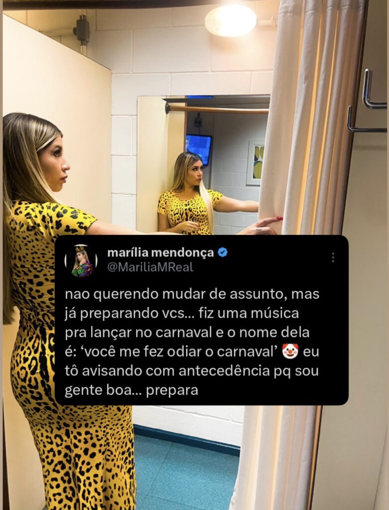 A equipe da cantora Marília Mendonça preparou uma grande surpresa para os fãs da artista ao divulgar uma prévia de “Você Me Fez Odiar o Carnaval”, faixa gravada pela cantora e anunciada por ela mesma meses antes de sua partida precoce.