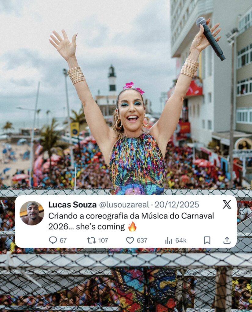 Acostumado a grandes sucessos que viraram trilha sonora do verão e do Carnaval, como “Tá Solteira, Mas Não Tá Sozinha”, “Cria de Ivete”, “Macetando”, “O Mundo Vai”, Energia de Gostosa” e “O Verão Bateu em Minha Porta”, o público já começa a demonstrar ansiedade nas redes sociais. A ausência de anúncios tem deixado os fãs inquietos, à espera de mais uma “pancada” da artista para embalar os trios elétricos e playlists da estação mais quente do ano.