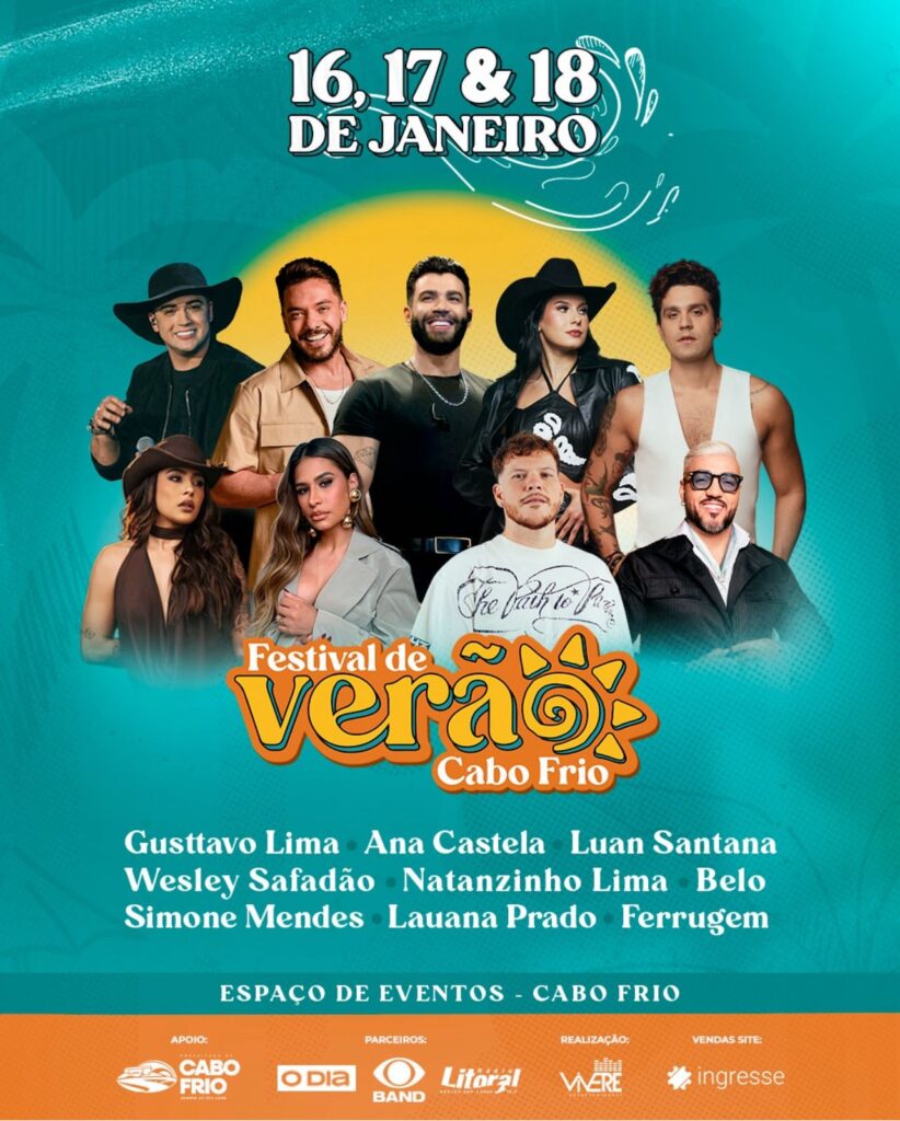 Festival de Verão agita Cabo Frio com shows de Gusttavo Lima, Wesley Safadão, Luan Santana, Ana Castela, Simone Mendes e muito mais!