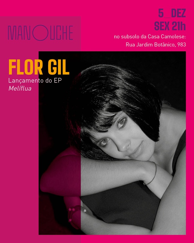 No palco do Manouche, Flor Gil apresentará todo o repertório do trabalho e algumas canções de CINEMA LOVE, incluindo os singles “HELL NO” e “Choro Rosa”, além de preparar surpresas na companhia de seu primo, Bento Gil, no violão; e de Pedro Malcher, no teclado.
