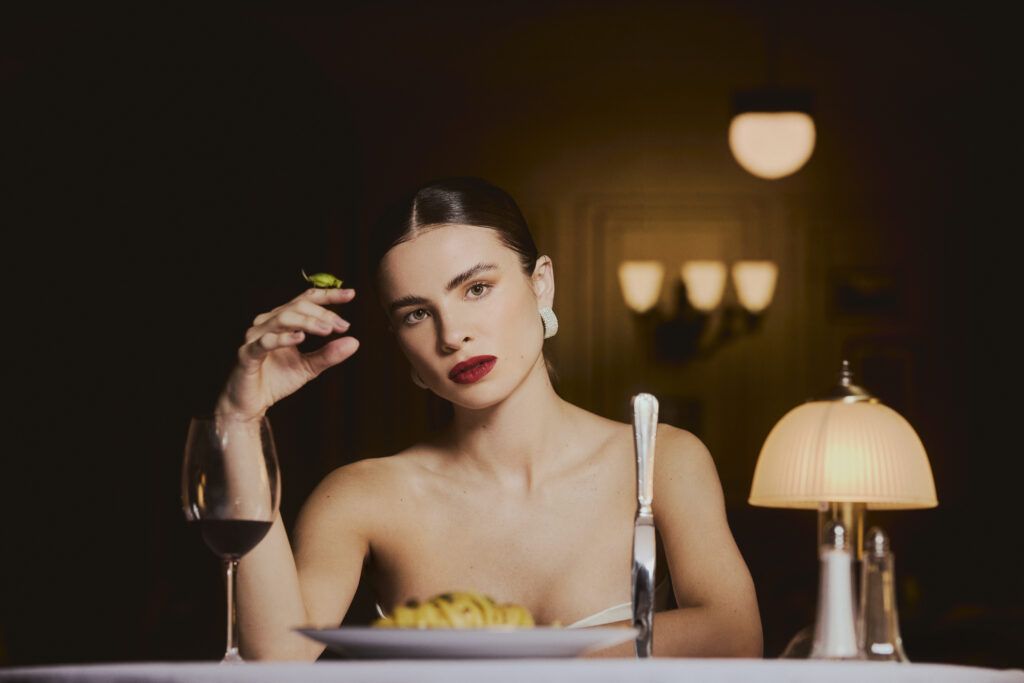 Com direção criativa de Olivia Mucida, Lennyn Salinas e da própria GIULIA BE, a música também ganha um videoclipe oficial ambientado em um restaurante. No vídeo, a cantora conversa diretamente com a câmera, como se estivesse em um encontro. Conforme a cena se desenvolve, fica claro que o momento não acontece exatamente como ela imaginava. No final, o conceito ganha um tom bem-humorado quando a artista termina a performance cercada por grilos no set, materializando a metáfora central da canção.