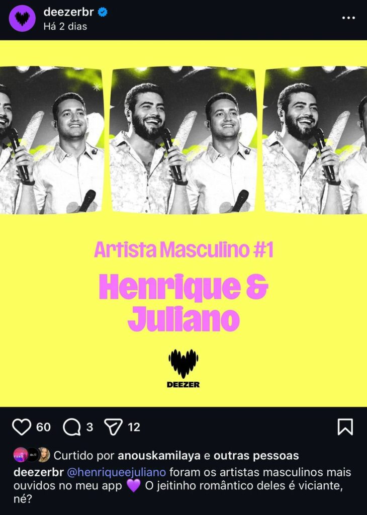 “A nossa maior conquista é quando a música se conecta com as pessoas, quando tocamos os sentimentos do nosso público, é ali que todo o esforço e dedicação vale a pena. Obrigado a cada um de vocês que colocaram Henrique e Juliano na vida de vocês e dedicaram um tempo a ouvir o nosso trabalho, obrigado”, comentam os irmaõs.