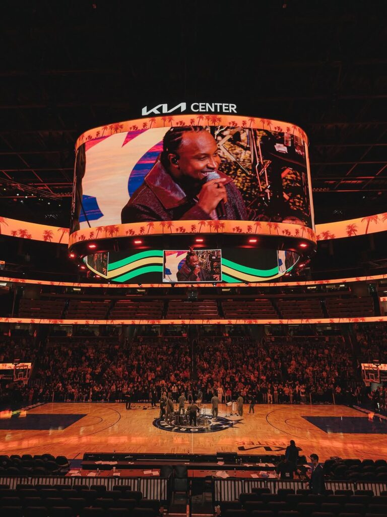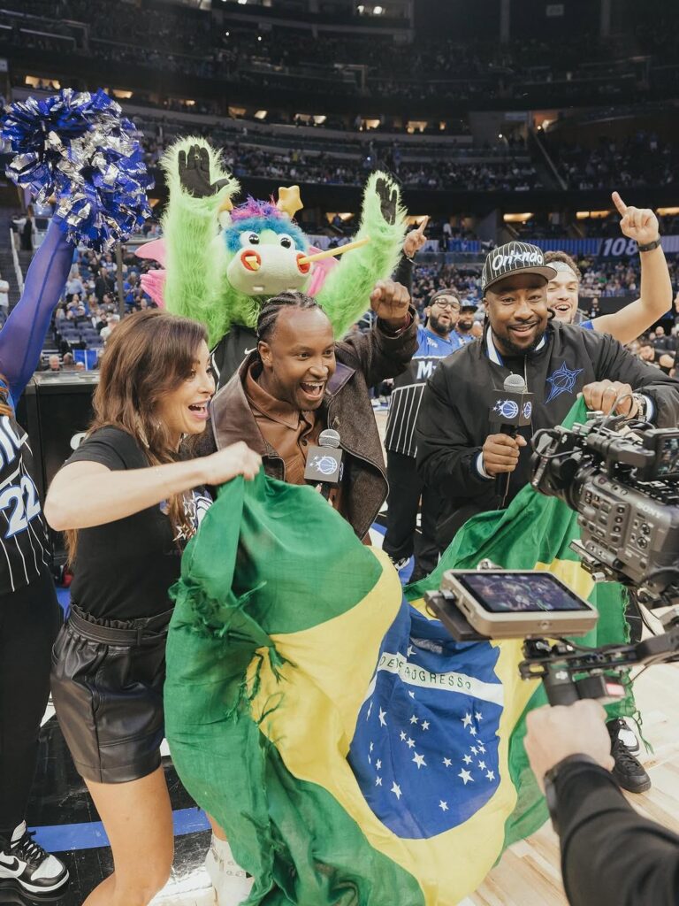 Histórico! Thiaguinho faz história ao cantar pagode durante jogo da NBA em Orlando.
