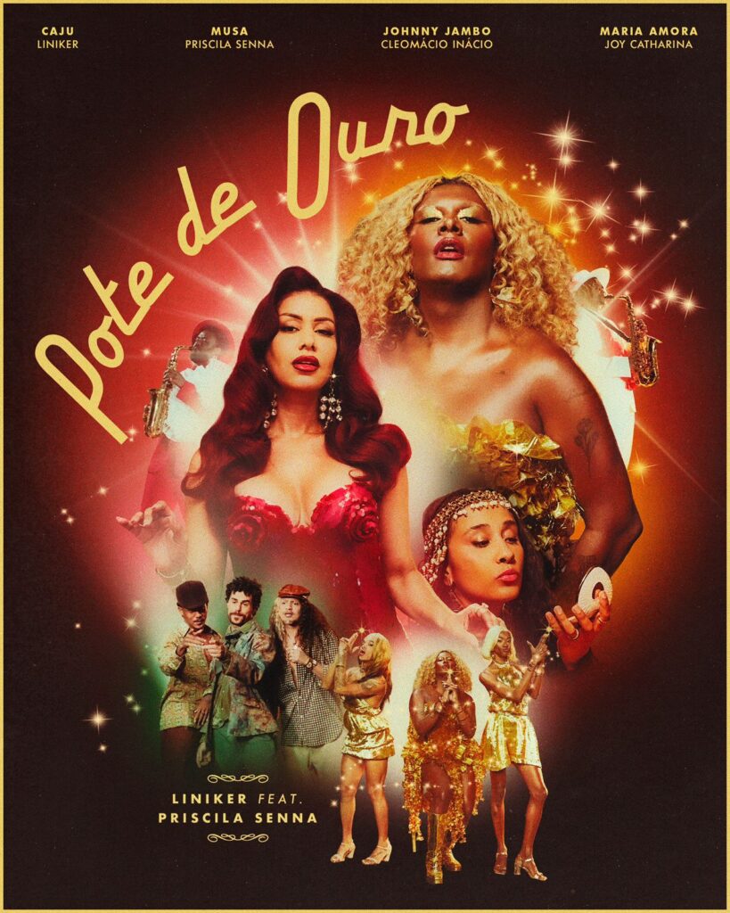 “POTE DE OURO” acaba de ganhar uma superprodução que expande ainda mais a poesia idiossincrásica de Liniker. O videoclipe traz camadas tarantinescas, aplicadas com uma boa dose de brasilidade pop, brega, dançante e dramática. Ao lado de Priscila Senna, Liniker retorna ao seu alter ego, Caju, para contar uma história de acerto de contas e reconquista da autoestima. As estrelas interagem com um elenco talentoso e cheio de personalidade, que traduz aos visuais toda a carga divertida e poderosa da faixa queridinha do público.