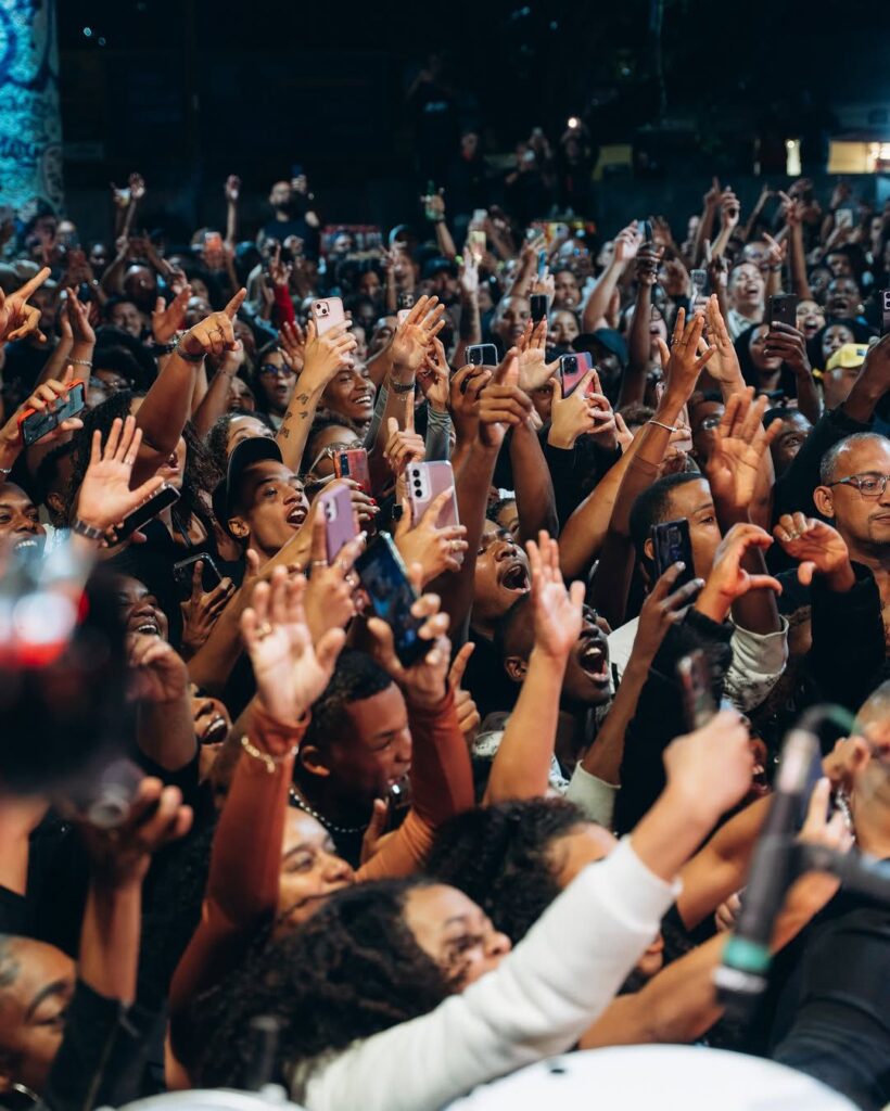 A chegada foi triunfal: logo de cara, a cantora puxou “Sintomas de Prazer” e levou os presentes ao delírio. A partir dali, cada canção interpretada por Ludmilla foi acompanhada em coro pela multidão. “Que evento é esse, meu irmão?!”, comentou a artista, empolgada com a energia da roda de samba.
