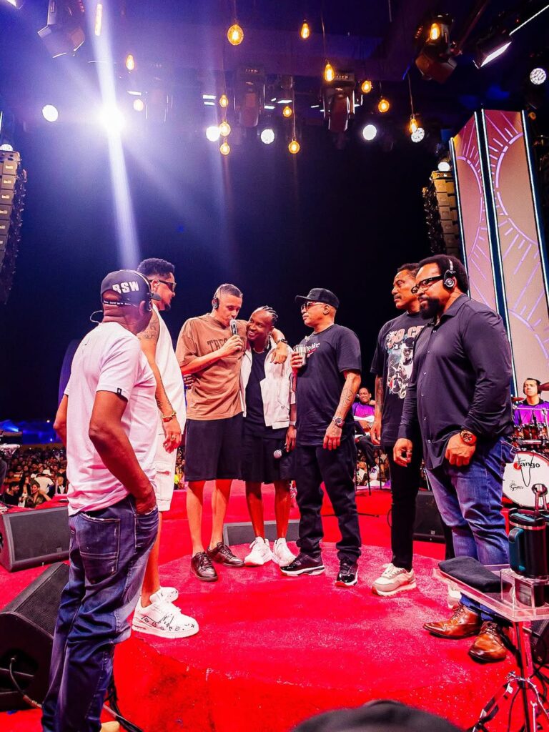 Logo na abertura, Thiaguinho — o “pai do Bento” — surgiu ao lado de Rafael Zulu, parceiro de longa data e um dos pilares dessa jornada. Juntos, deram início a uma apresentação arrebatadora, marcada por samba de qualidade, carisma e troca genuína com o público.